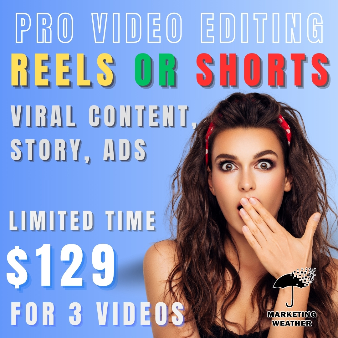 - Total of 3ea video editing service – Reels or shorts (30-60sec each maximum of the final footage)