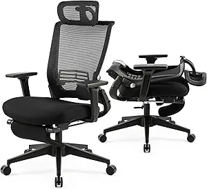 Foldable Office Chair with Foot Rest, Ergonomic Office Chair with Adjustable Lumbar Support, Headrest, Armrest, High Back Mesh Chair, Home Office Desk Chair for Space Saving, Black